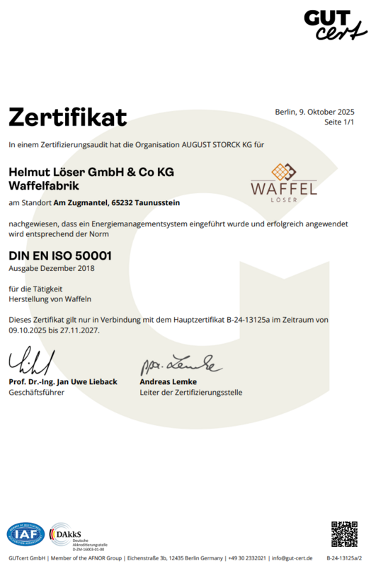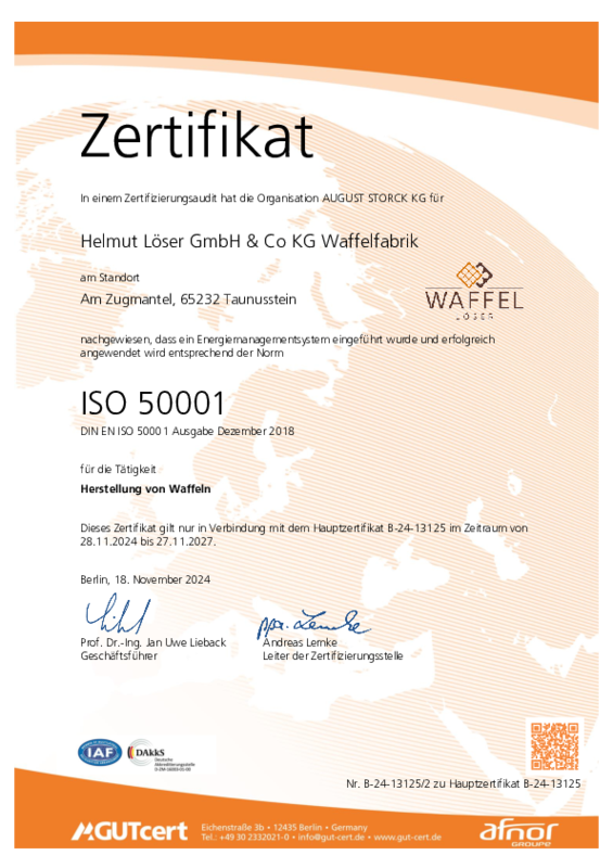 The Helmut Löser GmbH & Co. KG has committed itself to an efficient and lasting contact with energy and of course restricted resources. Aim is to reduce our energy consumption continuously. To achieve this aim, we hold an energy management system after German Institute for Standardization EN ISO 50001 upright.